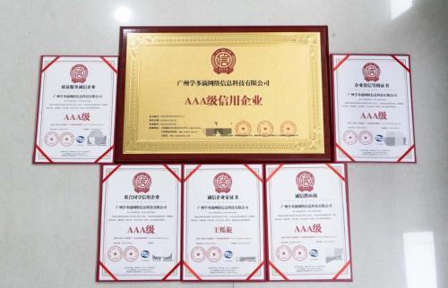 近日,广州学多滴网络信息科技有限公司收获满满,将 AAA 级信用企业、质量服务诚信企业、诚信供应商等多项 AAA 级信用荣誉收入囊中。这些荣誉不仅是对企业信用的高度认可,更是其综合实力强劲的有力证明,为企业在行业内的持续发展注入了强大动力。