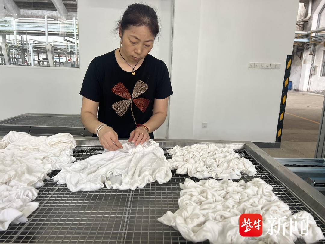 从落地成效看,生产线万件,已服务国内外多个品牌。“投产至今,单台机器人等效5名工人,用工量减少50%,最高月产能提升至10万件,正品率更是达到98%。”景小连表示,效率与质量的双提升,推动了企业直接销售收入增长22%。同时,染料利用率从60%提升至92%,年减少染料浪费30吨,公司因此获评“江苏省绿色工厂”。