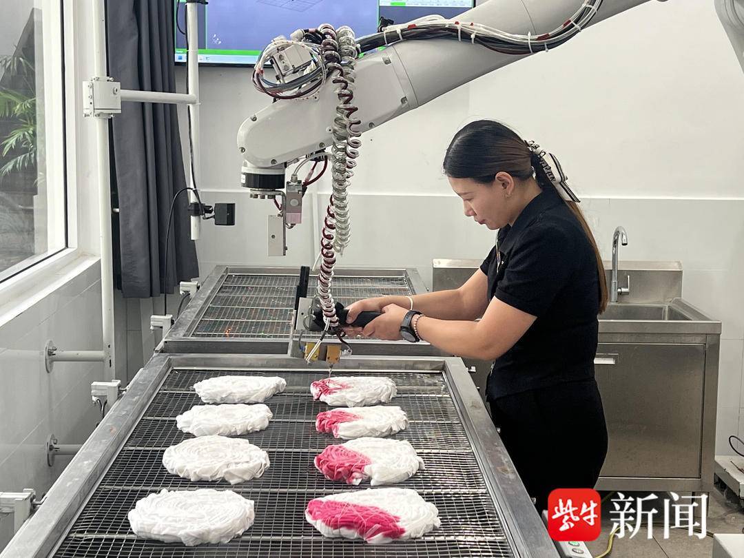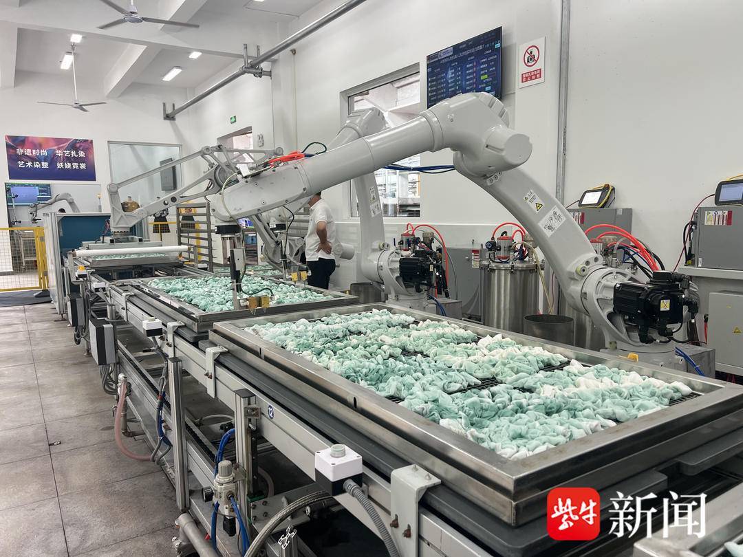 “我们在保留手工扎结传统工艺的基础上,融合了计算机视觉、深度学习等前沿技术,构建出‘手工扎花个性化—机器人执行—数字管理’的一体化系统,既守住非遗的‘魂’,又解决传统生产效率低、质量不稳定的难题。”江苏华艺服饰有限公司扎染事业部总经理景小连介绍。