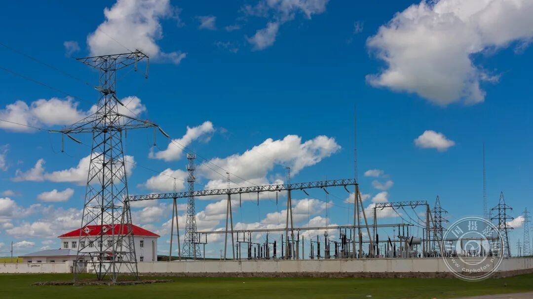 2025年8月3日拍摄于内蒙古自治区赤峰达里,蓝天、白云与电力设施构成美丽画面,凸显工业与自然融合。