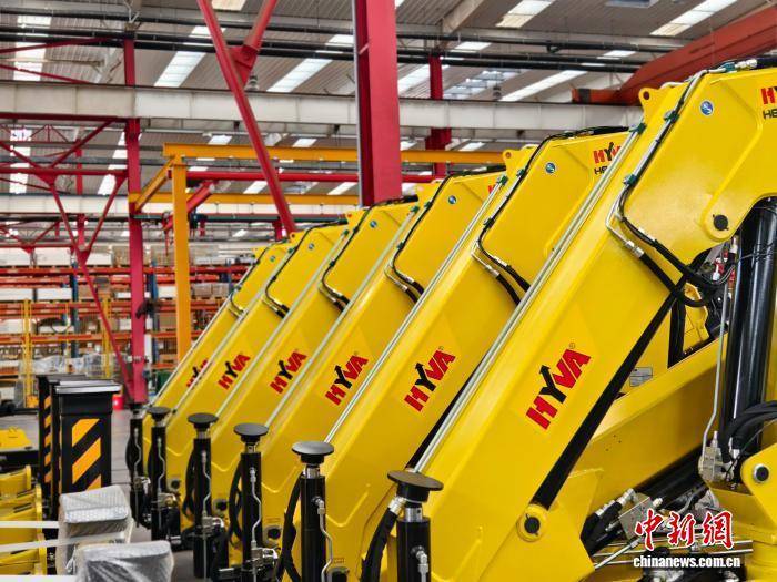 9月19日,江苏扬州,海沃国际集团亚洲区总部车间内展示的折臂式起重机。中新社记者 徐珊珊 摄