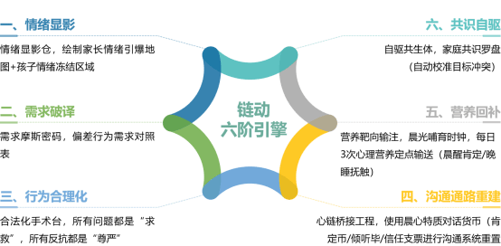 说到晨心向阳的服务体系,不得不提的就是他们的“链动六阶引擎”。这是一个创新性的服务模型,包含了情绪显影、需求破译、行为合理化、沟通通路重建、营养回补和共识自驱六个环节。每个环节都有明确的目标和方法,相互衔接又相辅相成。例如,在情绪显影阶段,他们会通过专业的工具和方法帮助家长和孩子识别自己的情绪状态;在需求破译阶段则会深入挖掘问题背后的原因;而在行为合理化阶段则会引导大家正确看待问题行为的本质……通过这样一系列精心设计的服务流程,晨心向阳能够帮助客户从根本上解决问题,实现家庭的和谐与幸福。