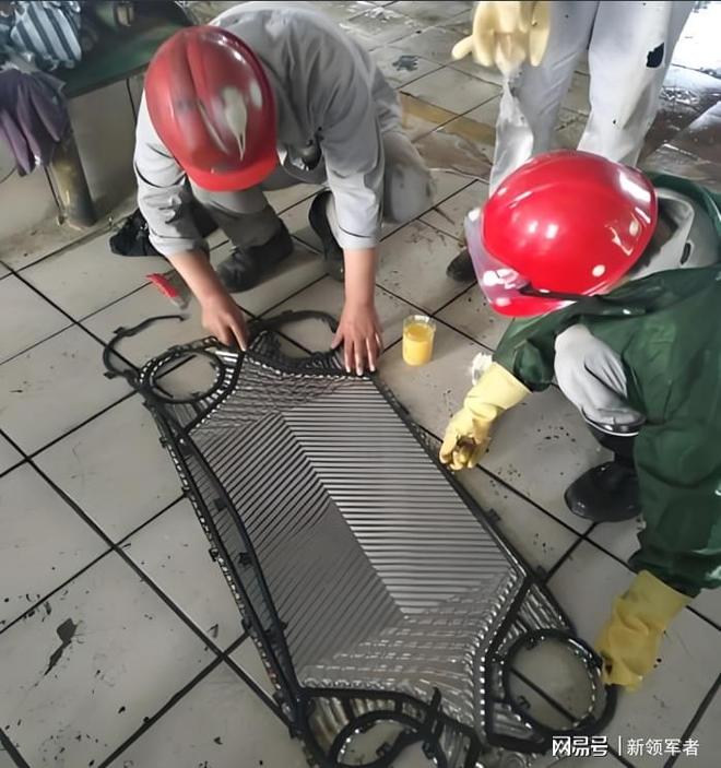 板式换热器拆解清洗工序包括,板换换热片的拆卸、浸泡、清洗、组装,板换换热片密封胶条的拆卸、放置、安装等等工序,有时结垢严重板换换热片仅酸液加温浸泡一个工序就需好几个小时