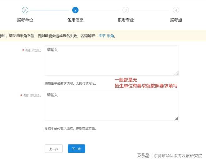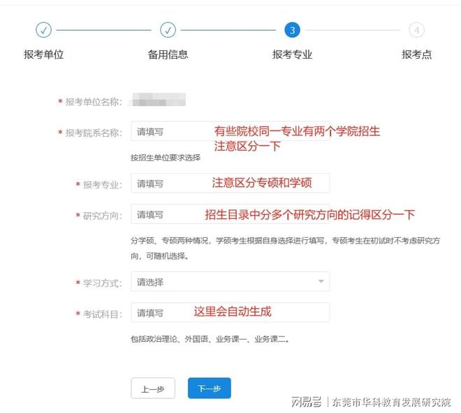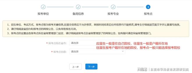 【招生单位】【报考点】【考试方式】等为报考关键信息,在提交报名信息后是不允许修改!